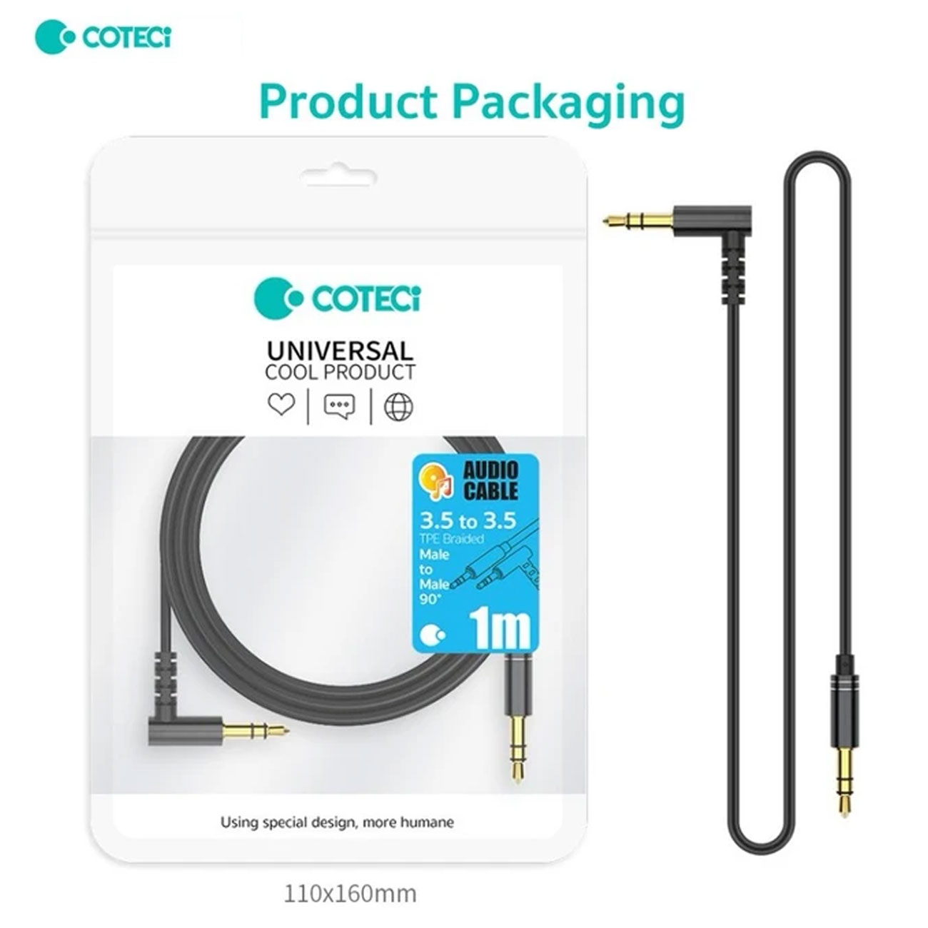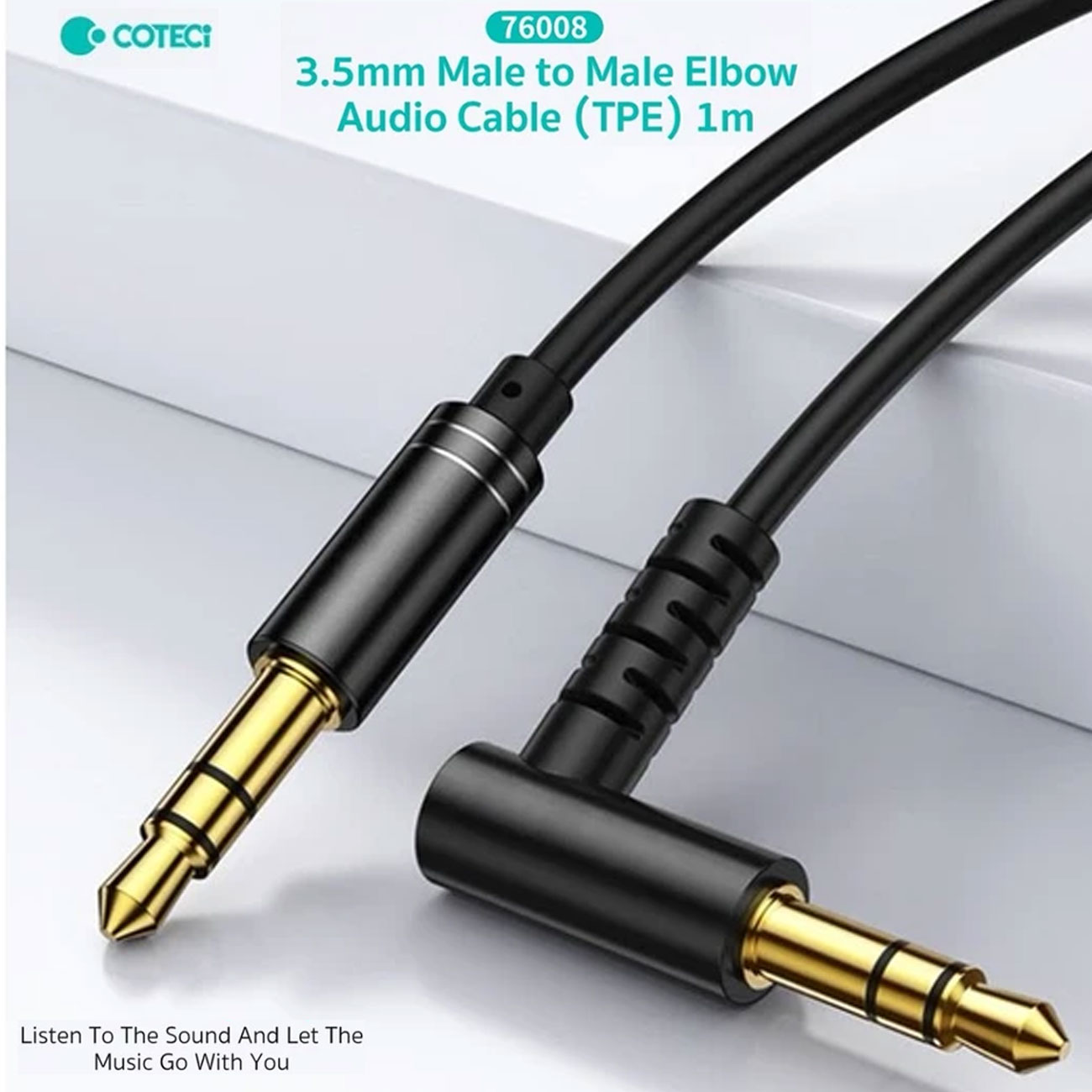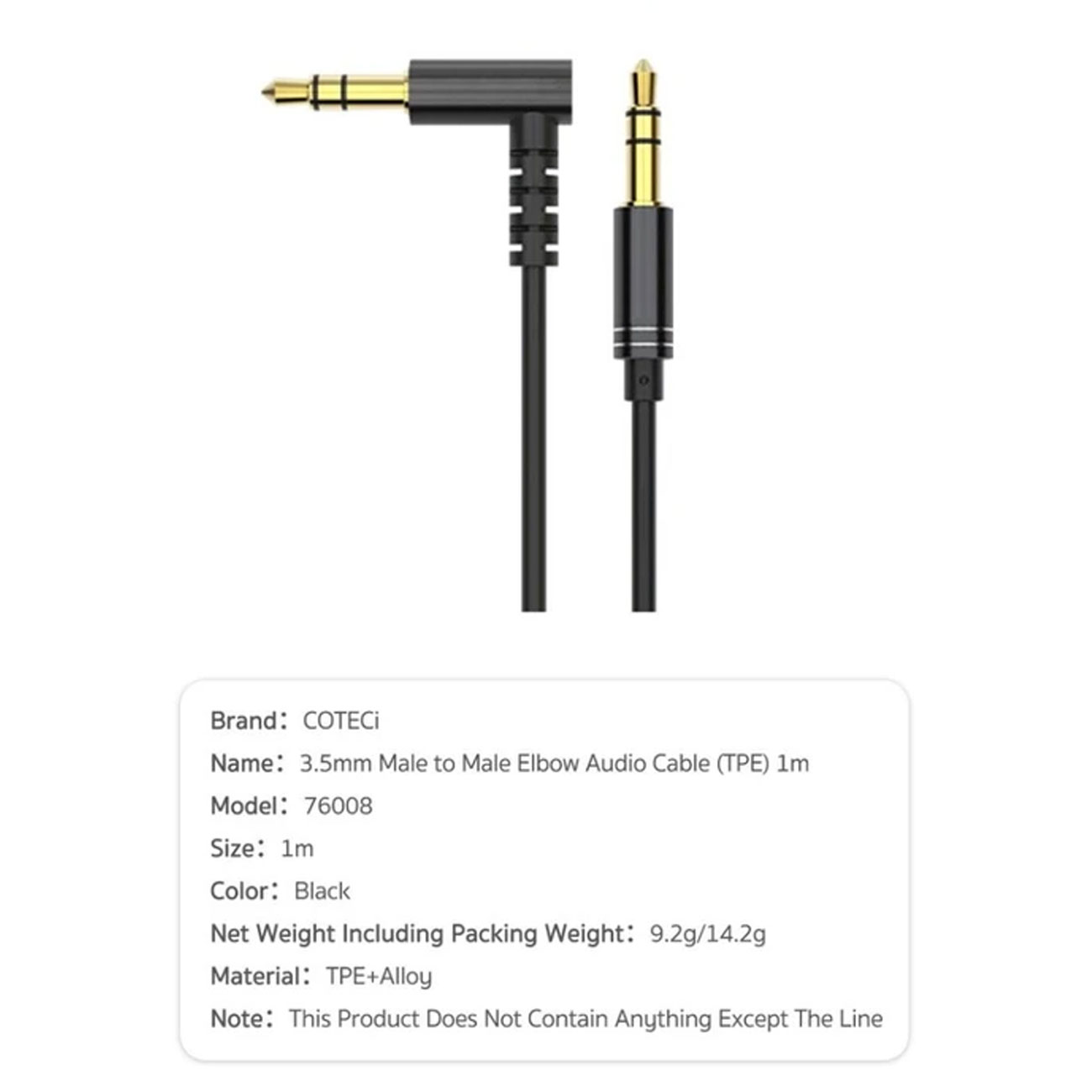 COTECI 3.5mm Male to Male Elbow Audio Cable (TPE) 1m 76008