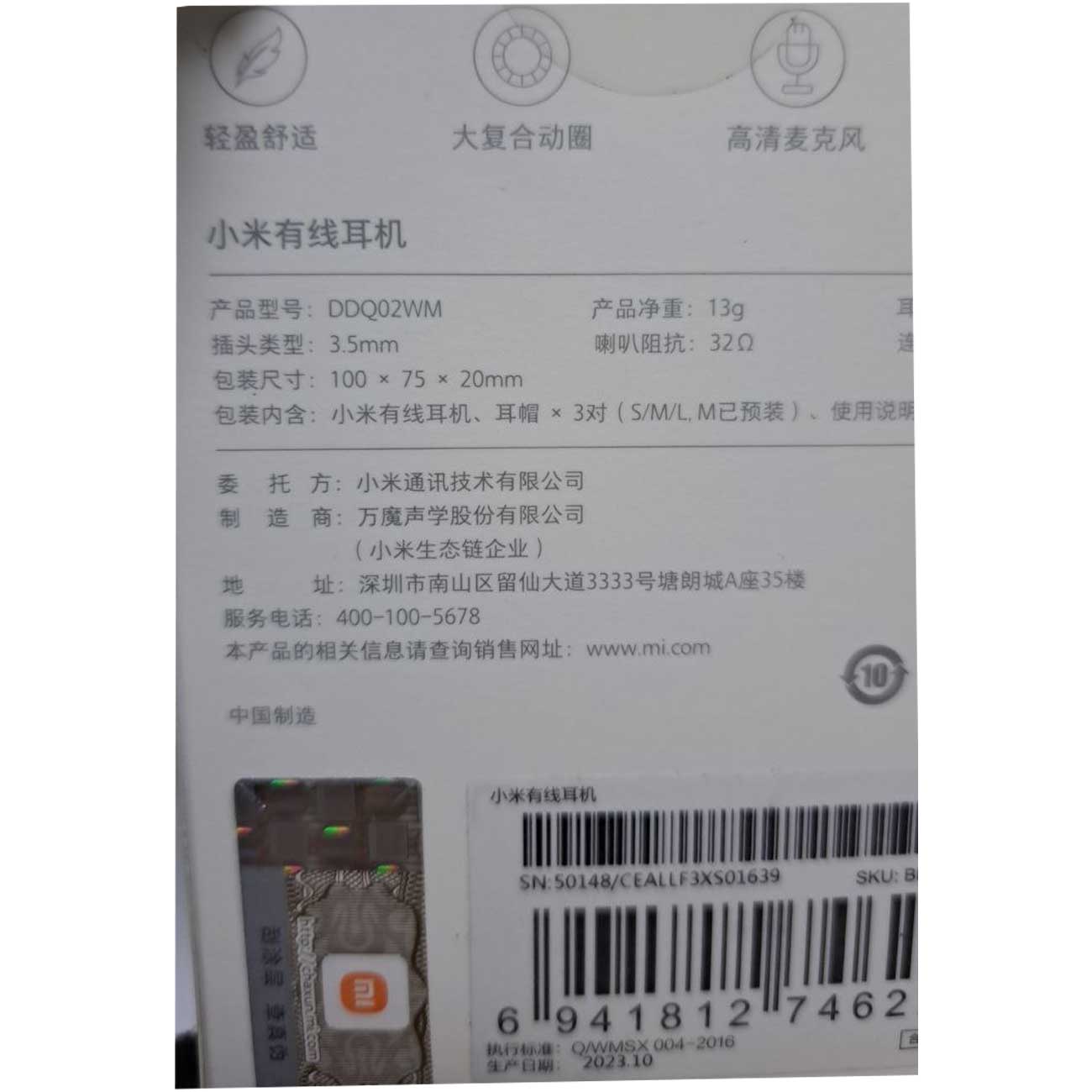 Xiaomi DDQ02WM HD In-Ear Wired Earphones